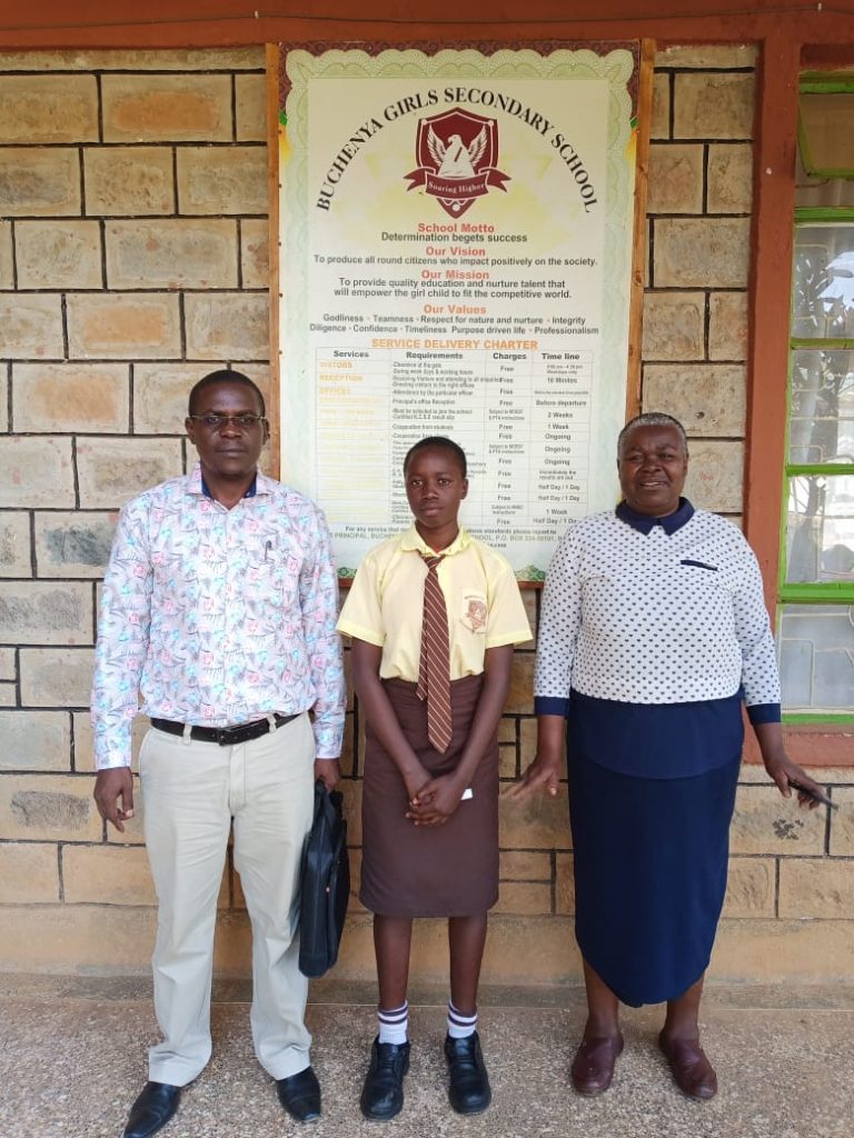 Follow-up visit and school fee cheque issuance session presided over by our executive director- Andrew H. Odongo with the principal of Buchenya Girls Secondary school and Cardline Ambale, our beneficiary.